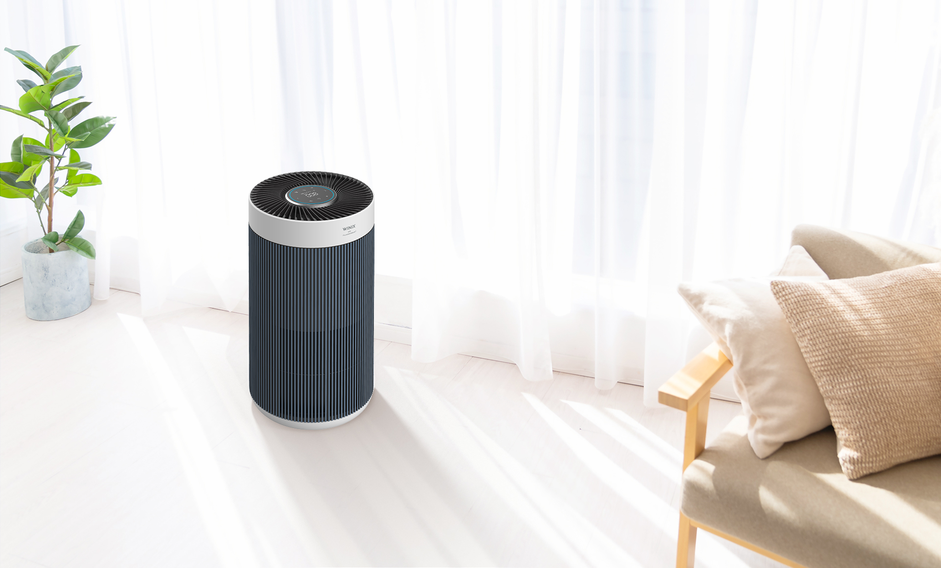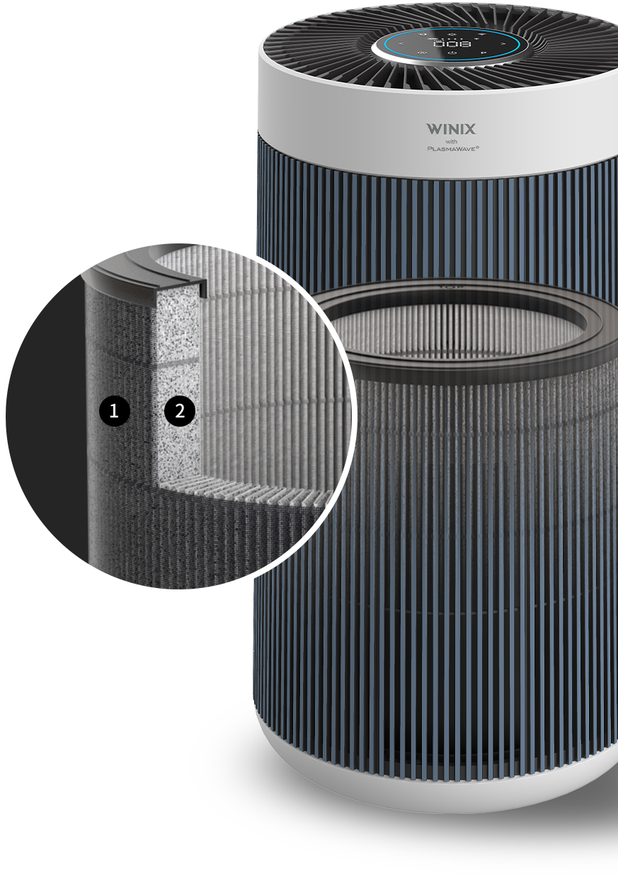 Winix True HEPA Captures 99.99%* of airborne allergens including pollen, dust, smoke, and pet dander as small as 0.01 microns.